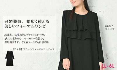 【送料無料】日本製 大きいサイズ ブラック フォーマル ワンピース ティアードフリル Aライン ロング丈 黒 おしゃれ セレモニー 喪服 礼服 ミセス マタニティ 30代 40代 50代 13号 15号 17号 19号 21号 LL 3L 4L 5L 6L