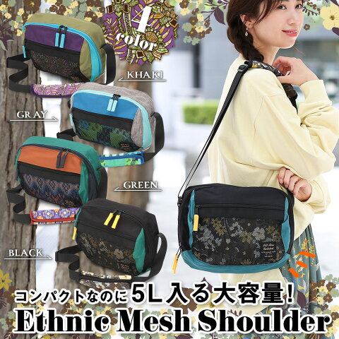 ショルダーバッグ 斜め掛け 肩掛け ワンショルダー 鞄 かばん 軽い レディース メンズ スクエア 大容量 5L 背面ポケット マチ 撥水 はっ水 旅行 フェス キャンプ アウトドア エスニック チチカカ TITICACA / エスニックメッシュショルダー zkwcbb7019