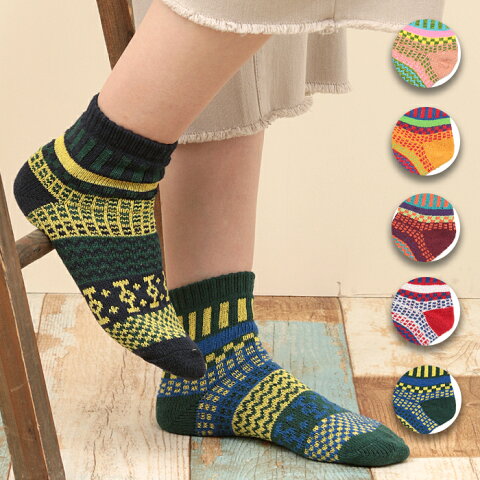 ソックス 靴下 レディース 秋 冬 春 夏 アンクル ショート丈 短め 総柄 カラフル ボーダー スニーカー おしゃれ かわいい プチプラ プレゼント ギフト 23cm 24cm 25cm エスニック チチカカ TITICACA / クレイジー靴下アンクル zdscba7030