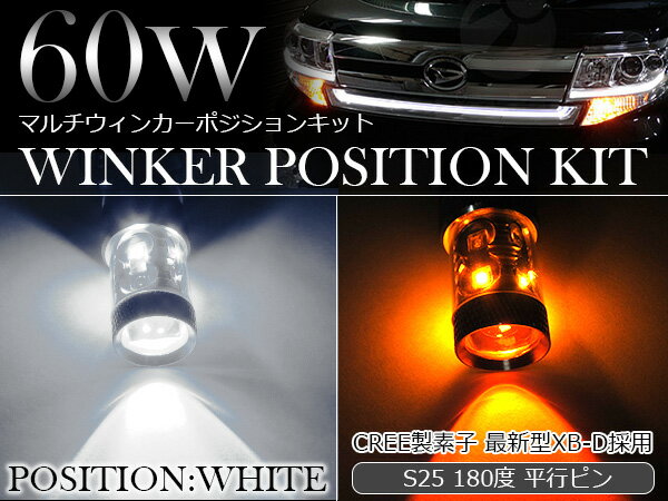 CREE製 最新素子XB-D採用! プロジェクターLED ウィンカーポジション内蔵 LEDバルブ S25 BA15S 180度 平行ピン 60Wマルチバルブ レッド⇔アンバー ウインカーバルブ切替 ポジション球 ウィポジ ウインカー球 赤 オレンジ 180° DC12V ダブル発光 ステルス球