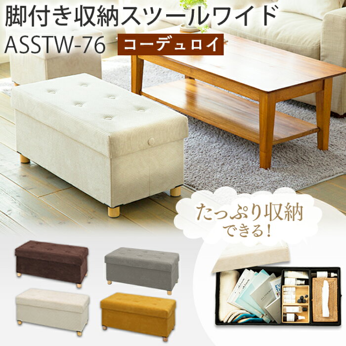 脚付き収納スツール ワイド ASSTW-76ファブリック コーデュロイ ネイビー グレー グリーン ブラウン ワインレッド ベージュ マスタード ワイド 収納スツール 椅子 イス チェア ソファ サイドテーブル 収納BOX アイリスオーヤマ