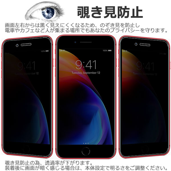 iPhone SE 第3世代 第2世代 SE3 SE2 iPhone8 iPhone7 フィルム のぞき見防止強化ガラス 液晶保護フィルム 9H強化ガラス カバー シート シール アイフォン 7 スマホフィルム 画面左右からは黒く見えにくくなるため、のぞき見を防止し電車やカフェなど人が集まる場所でもあなたのプライバシーを守ります。