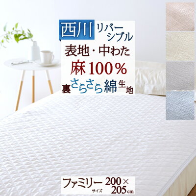 SS限定★500円クーポン★ 敷きパッド ファミリーサイズ 200cm幅 西川 麻100% 天然繊維 ひんやり 西川産業 東京西川 夏 涼感 冷感 リバーシブル 裏生地綿100% 敷パッド ベッドパッド 200×205cm