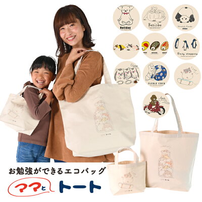 【トート2個+Tシャツ】トートバッグ エコバッグ イラスト 動物 犬 猫 ハムスター かわいい 大容量 Lサイズ Sサイズ 大きめ 小さめ A4 縦型 レディース メンズ キャンバス ママとトート【ネコポス】【Lot No.01】