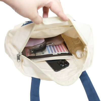 リトルミイ トートバッグ ムーミン かわいい おしゃれ 肩かけ 大人 キャラクター グッズ 北欧 頑丈 大容量 軽い 厚手 シンプル a4 縦 レディース 縦型 キャンバス 帆布 天ファスナー フロントポケット 内ポケット ベージュ