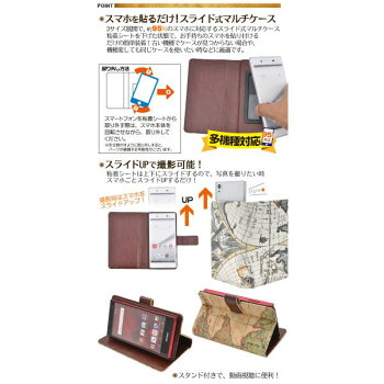 レトロな世界地図デザインが存在感抜群!各種スマホ対応マルチタイプのワールドデザインレザーケースポーチ! 貼り付けるだけの簡単装着! iPhone/Xperia/AQUOS PHONE/Galaxyなど各種スマホに使えるマルチタイプのレザーポーチです。