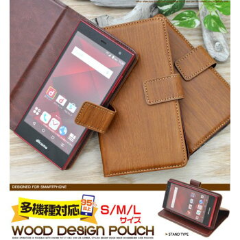 (多機種対応!スマホケース)マルチタイプ ウッドデザインレザーケースポーチ S/M/L [キャンセル・変更・返品不可]
