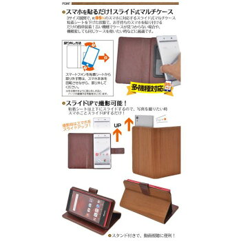 温かみのある美しい木目デザイン!各種スマホ対応マルチタイプのウッドデザインレザーケースポーチ 貼り付けるだけの簡単装着! iPhone/Xperia/AQUOS PHONE/Galaxyなど各種スマホに使えるマルチタイプのレザーポーチです。