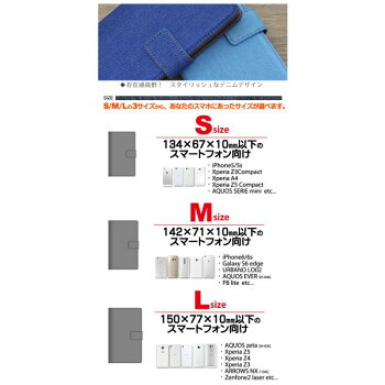 対応機種【Lサイズ】縦150×横77×厚み10mm以下のスマートフォン・AQUOS zeta(SH-03G)・Xperia Z4 ・Xperia Z3・ARROWS NX(F-04G) ・Zenfone2 laserなど【Mサイズ】縦142×横71×厚み10mm以下のスマートフォン・iPhone7/6s/6 ・Galaxy S6 edge ・URBANO LO02 ・AQUOS ever ・P8 liteなど【Sサイズ】縦134×横67×厚み10mm以下のスマートフォン・iPhone5/5s ・Xperia Z3Compact ・Xperia A4 ・AQUOS SERIE miniなど※機種によってはカメラは使用できない場合があります。