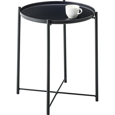 トレーサイドテーブル W48×D48×H52 ( サイドテーブル ソファーテーブル コーヒーテーブル カフェテーブル ナイトテーブル お洒落 おしゃれ シンプル ソファー リビング スチール 軽量 持ち運び トレー 丸形 ホワイト 一人暮らし シンプル )